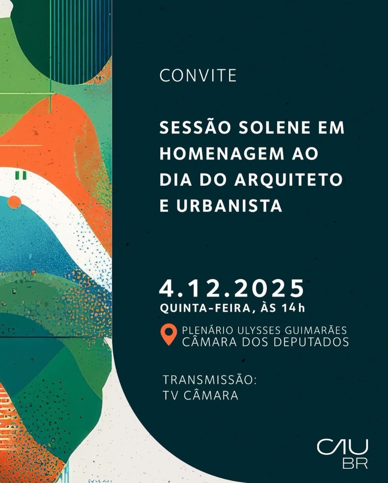 As comemorações para o Dia Nacional do Arquiteto e Urbanista já começaram. Na próxima quinta-feira, 4 de dezembro, será realizada uma sessão solene em homenagem aos profissionais, no Plenário Ulysses Guimarães da Câmara dos Deputados, em Brasília.