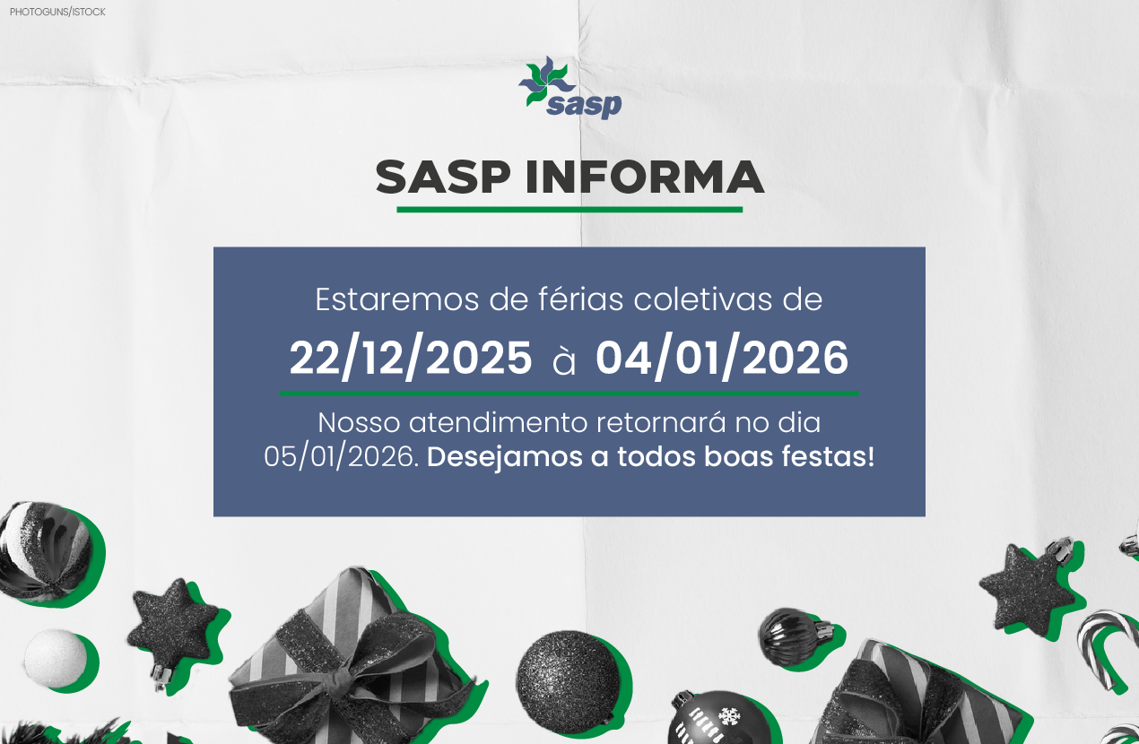O SASP informa que no período de 22/12/25 a 04/01/26 estaremos de férias coletivas.
